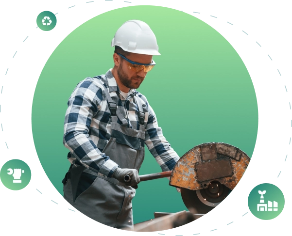 Ofrecemos cuatro servicios ligados con la gestión, clasificación y reutilización de materiales: desinstalación de plantas industriales, manejo de materiales reciclables, materia en contenedores y material a granel.